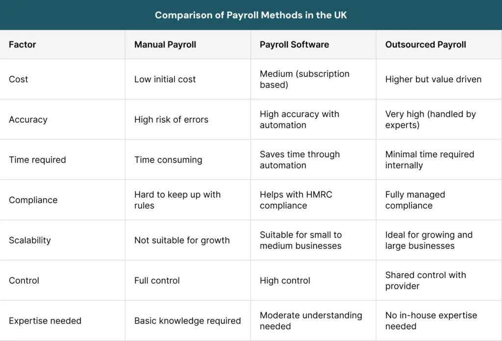 It covers wages, bonuses, tax deductions, pensions and reporting to HMRC. It also includes record keeping and compliance.