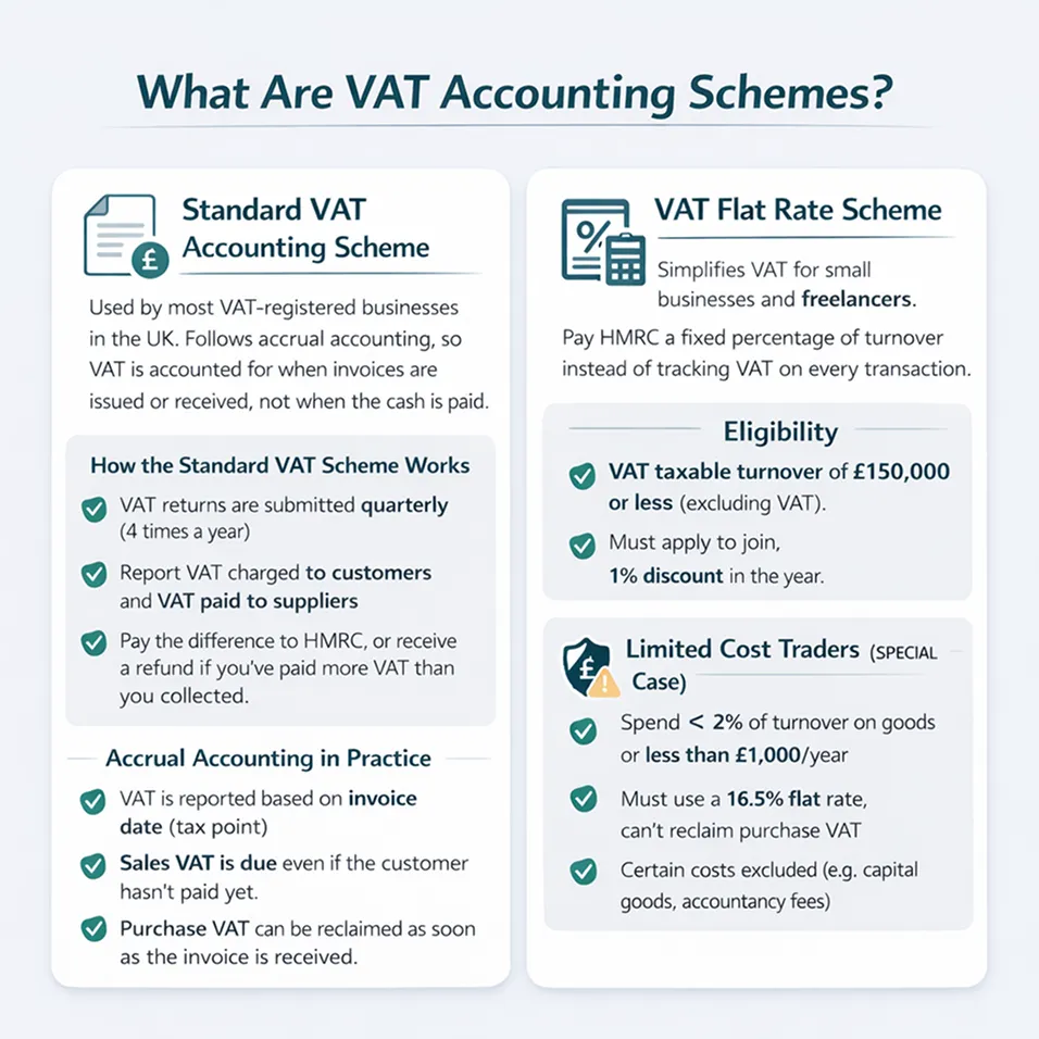 These schemes can be used with the Cash Accounting Scheme and the Annual Accounting Scheme as well. This offers you further flexibility.